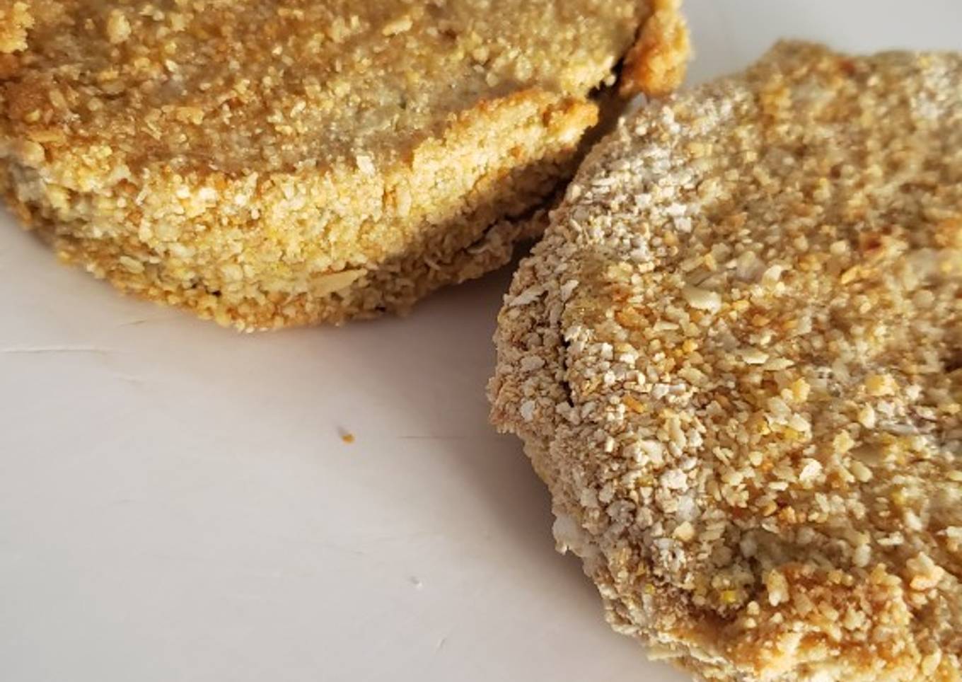 - Pasamos las berenjenas por papel absorbente para sacarles el agua y pasamos por el huevo, luego por el pan rallado mezclado con la avena, yo hice este paso 2 veces, quedan mejor. Las ponemos en una placa con un poquito de aceite y al horno!!