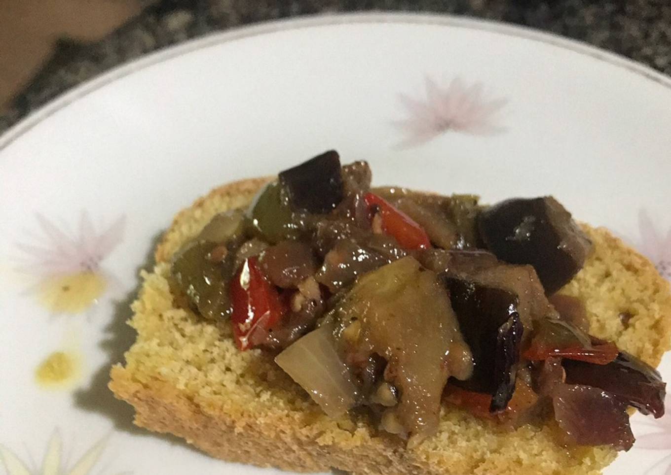 - Hoy hice ambos, el pan de maíz y la caponata... pruébenla. En otro momento subo la otra receta, semejante, más sencilla. Solo berenjenas y morrones. Ya compartiré.