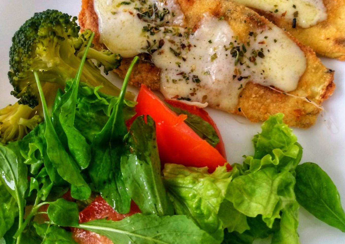 Milanesas de berenjena con queso y ensalada