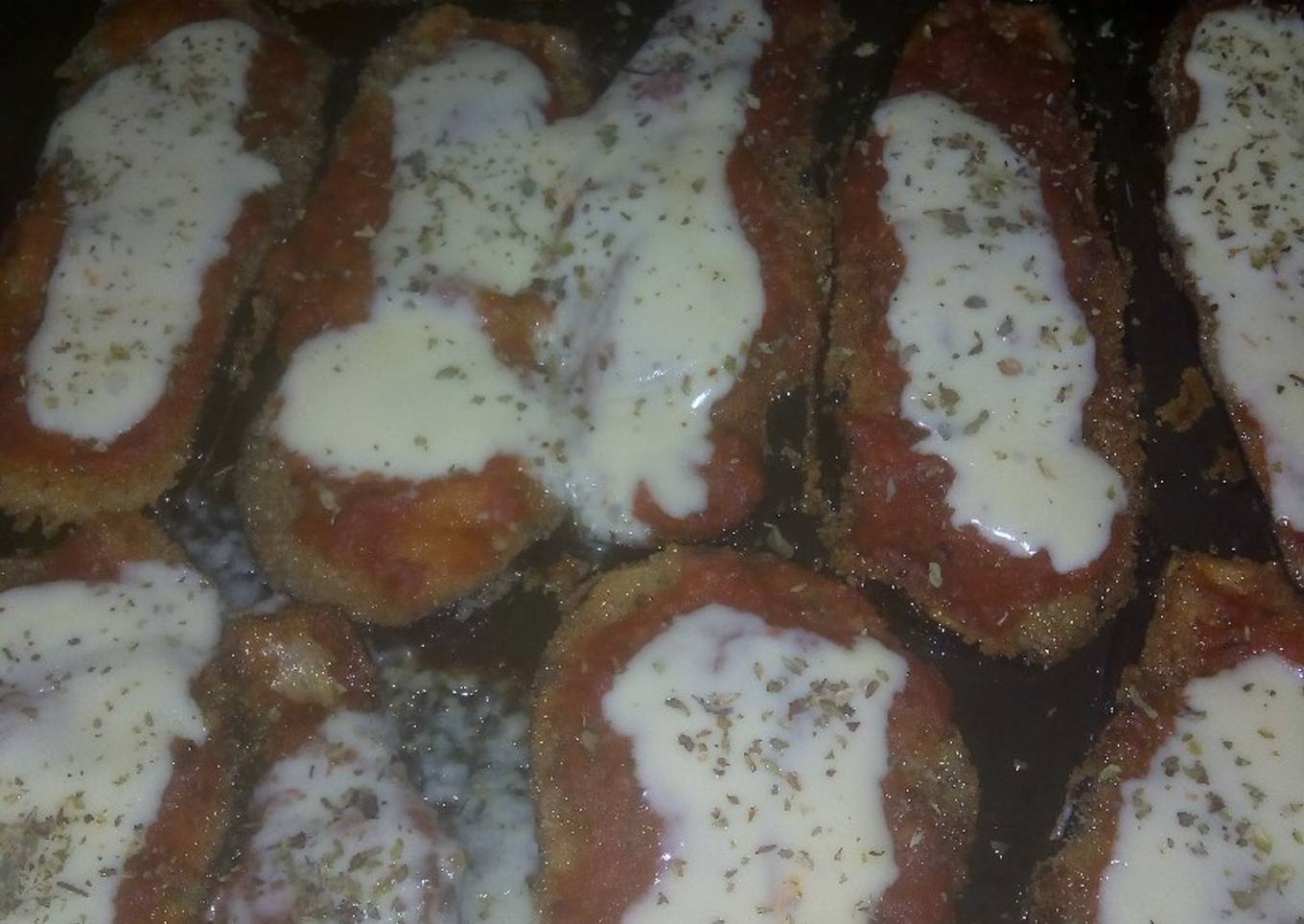 - Cuando estén doradas colocar la salsa de tomate y el queso, sacar cuando granite