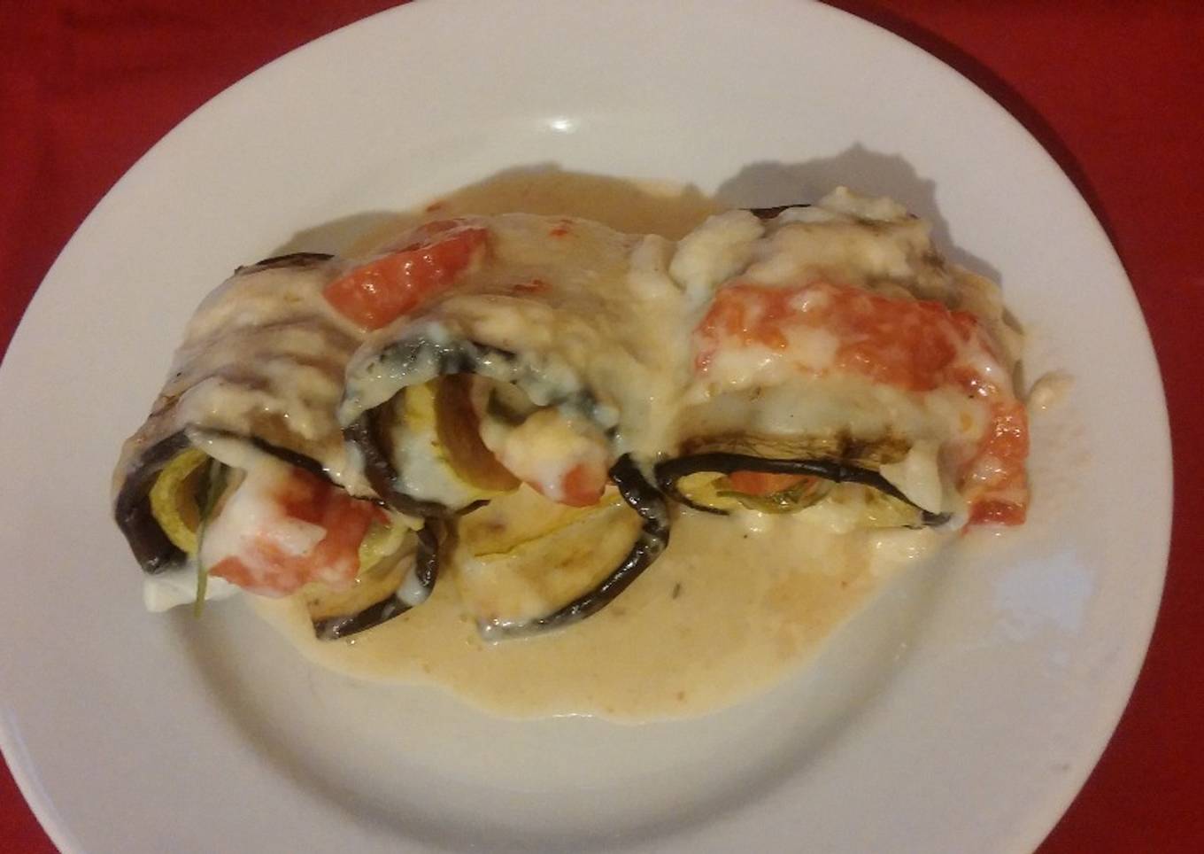 Rollitos de Berenjena con zucchinis, tomates y queso, al micro