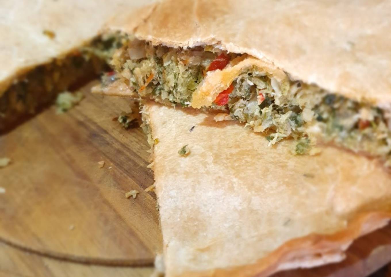 - Coloco una tapa, relleno y encima la otra tapa que perforo con tenedor. Al horno hasta que dore.