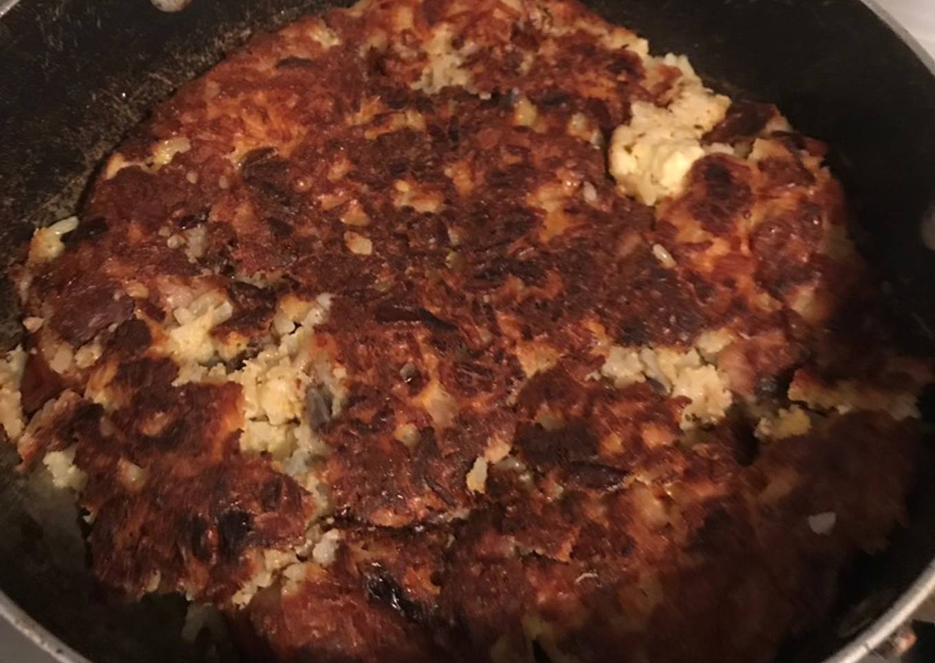 - Una vez asada lleve ahí mismo el cerdo y el cebollín picado sofríe una vez esto revuelva el arroz los huevos leche y haga una pasta, échele el pan sal el queso picado y lleve en sartén antiadherente deje que se haga por lado y dele la vuelta