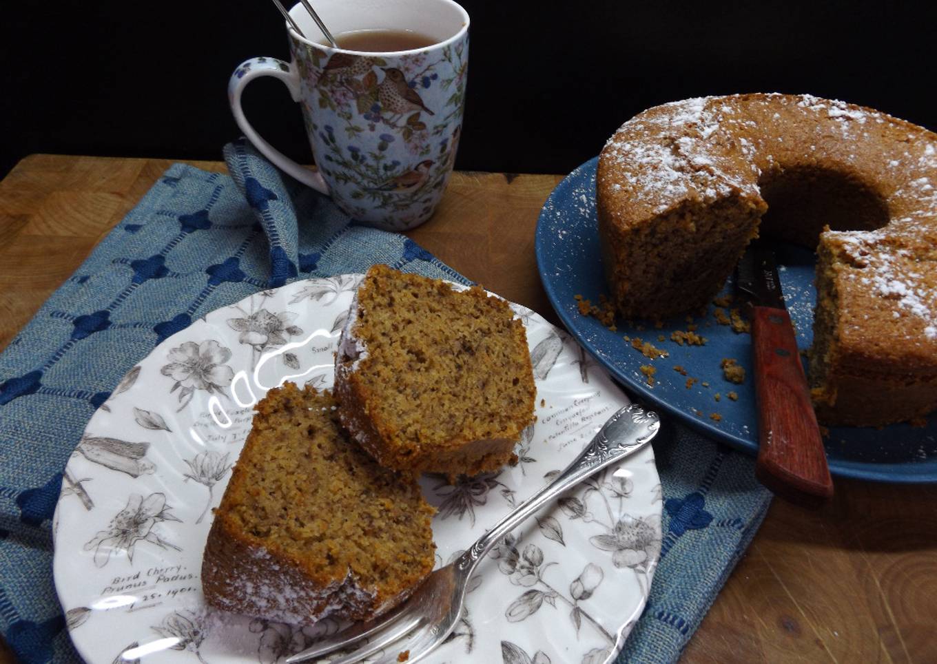 Bizcocho de harina de espelta integral, calabaza y zanahoria con nueces