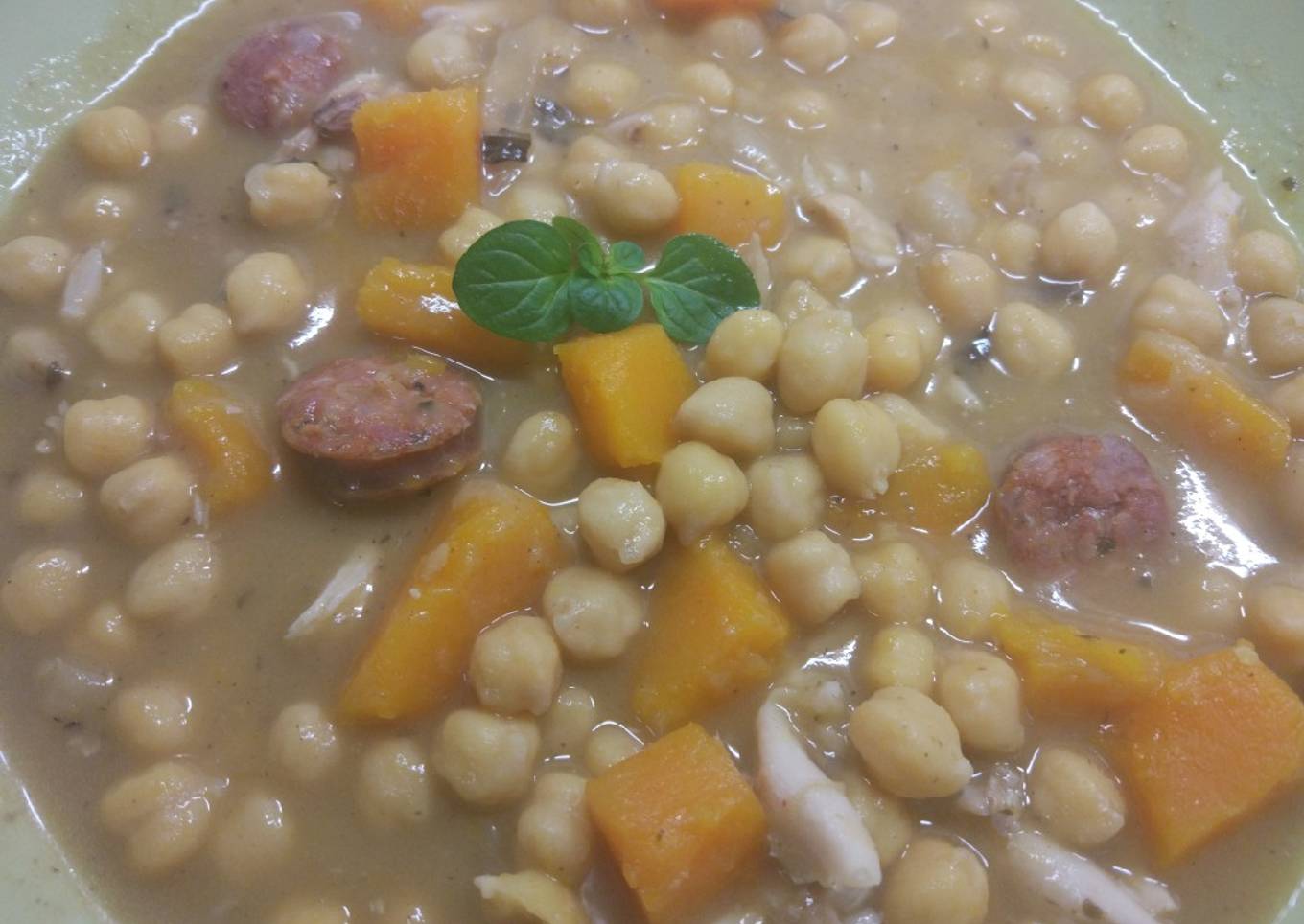 Instructions to make to make Potaje de garbanzos con calabaza y chorizo