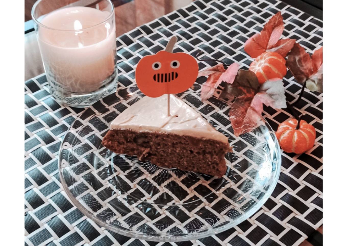 - Podemos decorar nuestro bizcocho para darle un toque más festivo de Halloween con crema de queso (naranja) y ponerle toppings encima o cbocolatinas