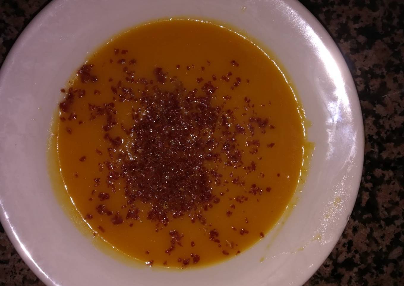 Crema de calabaza con virutas de jamón